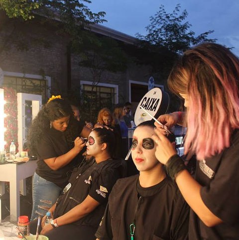 A equipe é formada por maquiadores profissionais experientes em eventos de grande público, com média de 7 minutos por maquiagem.
