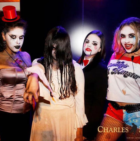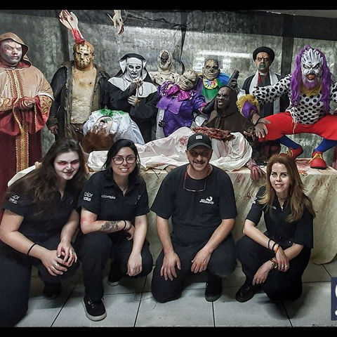 Desde salões completos, mesas simples a labirintos macabros com personagens assustadores.
